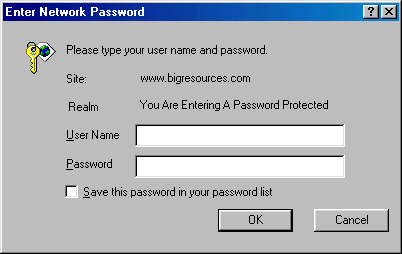 One of the many features of Htaccess password protection. Allowing you to password protect any directory on your system, restricting access to only users you specify. What does an htaccess password prompt look like?